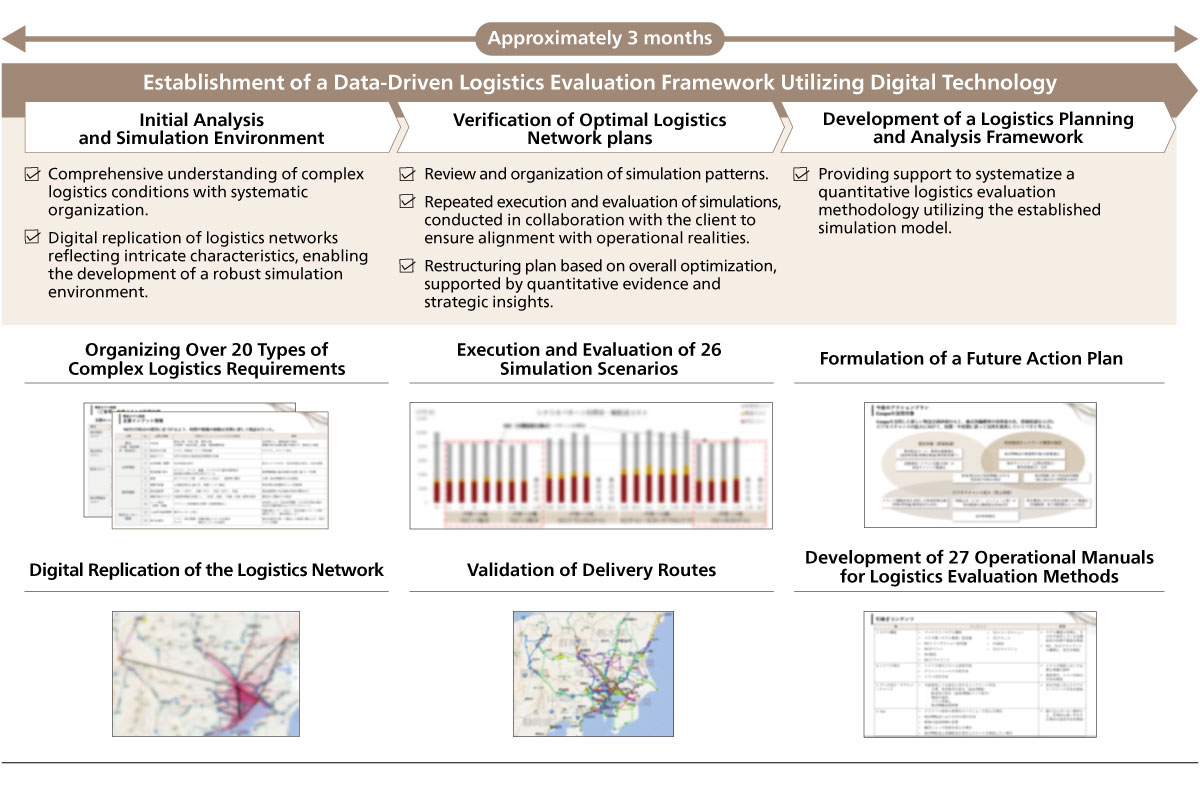 JR East Logistics faced the need to restructure its logistics network to adapt to changing demand trends. Additionally, with future business expansion and increasing uncertainty, it became more important to evaluate logistics strategies from multiple perspectives using quantitative methods.