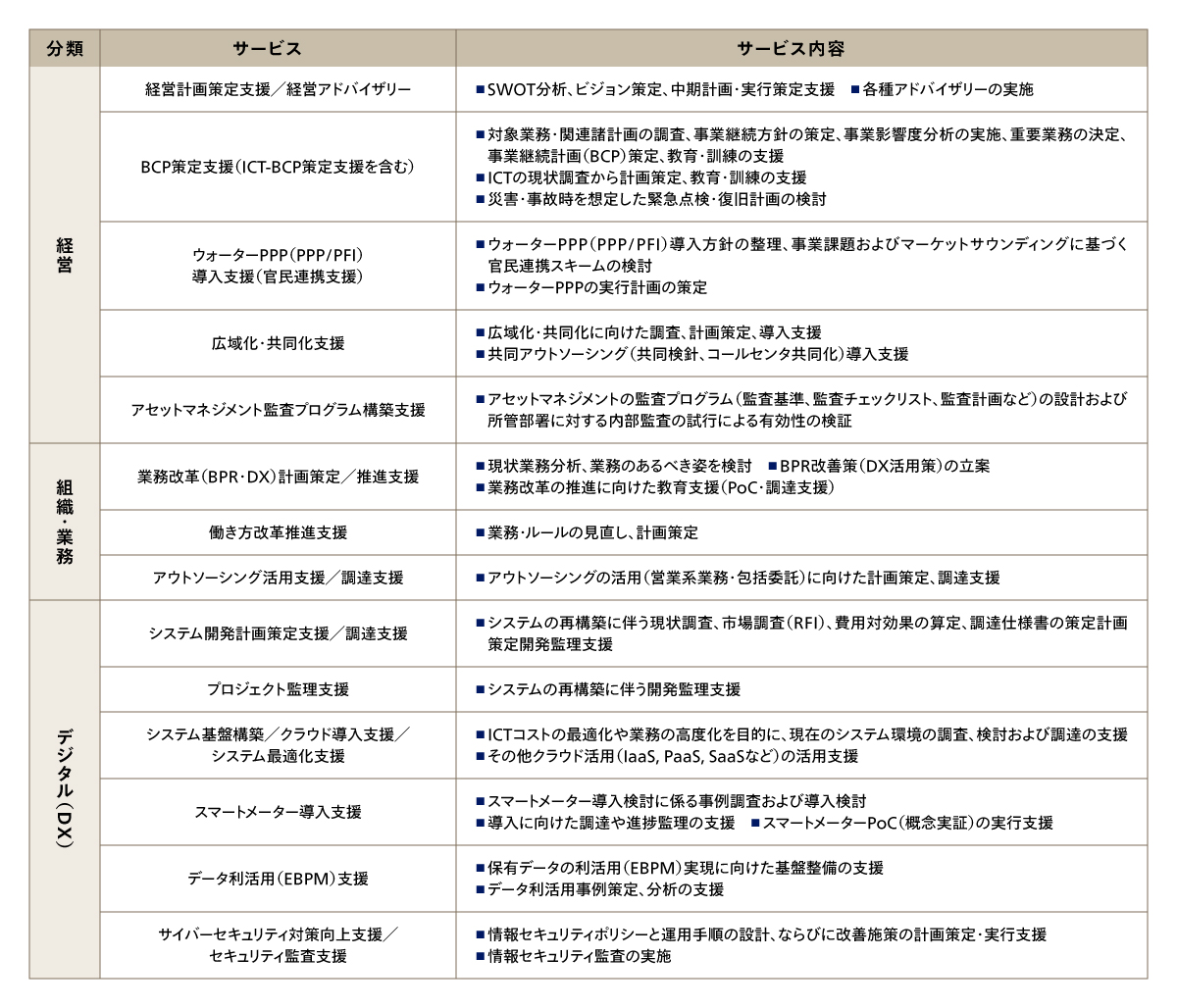 経営管理から運営効率化、デジタル活用まで、上下水道事業の課題解決を包括的に支援