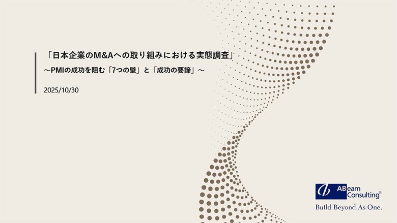 アビームコンサルティングは、日本企業のM&Aへの取り組み実態と企業価値向上の相関性を明らかにするため、M&A関連業務経験を有する経営層から主任・係長職までの300名を対象に調査を実施しました。