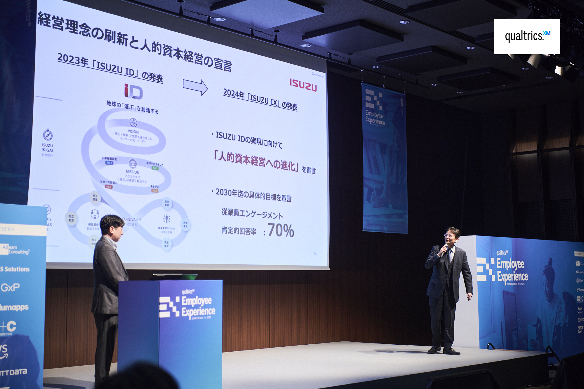 2025年11月に開催された「Qualtrics EX Conference 2025 〜AIと人のちからで、企業価値の向上へ〜」では、いすゞ自動車株式会社 人事部門VPの武田修氏と、アビームコンサルティング 人的資本経営戦略ユニット ダイレクターの佐藤一樹が登壇。「課長層の “声” が組織を動かす ~現場から始まる変革のストーリー」と題して、いすゞ自動車における、課長層のエンゲージメント向上の実践事例について紹介した。本インサイトでは、その内容をダイジェストでご紹介する。