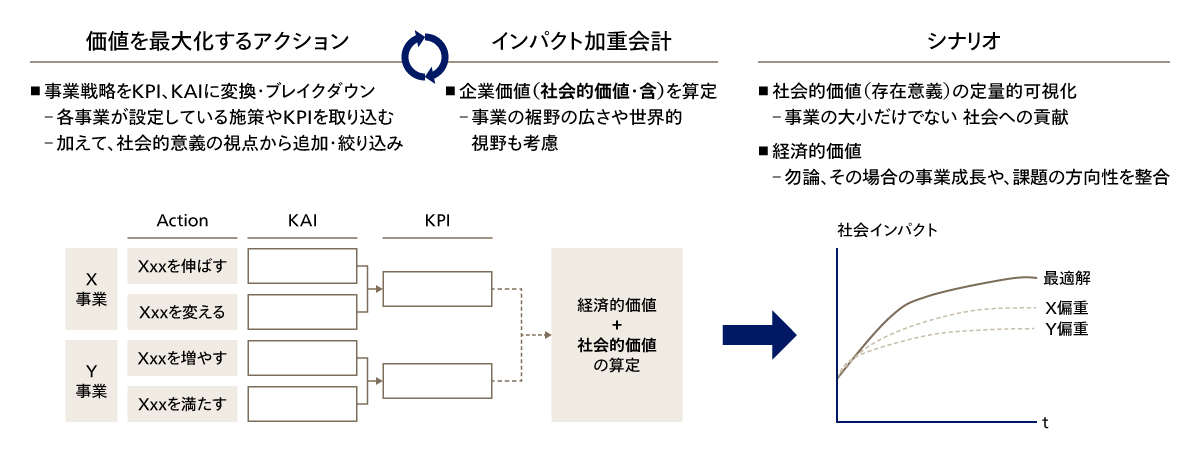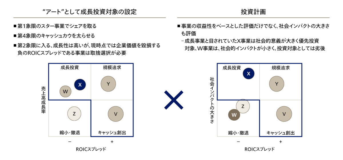 3点目は、静的なポートフォリオ評価の限界である。時間軸が事業ごとに異なるため、長期ビジョンや中計の断面で切り取っても、事業の実体や将来性を正しく評価するのは難しい。四象限のマトリクスに各事業をバブルチャートでマッピングするだけでは、現状の可視化に留まり、事業ポートフォリオ変革に向けたボトルネックは見えてこない。