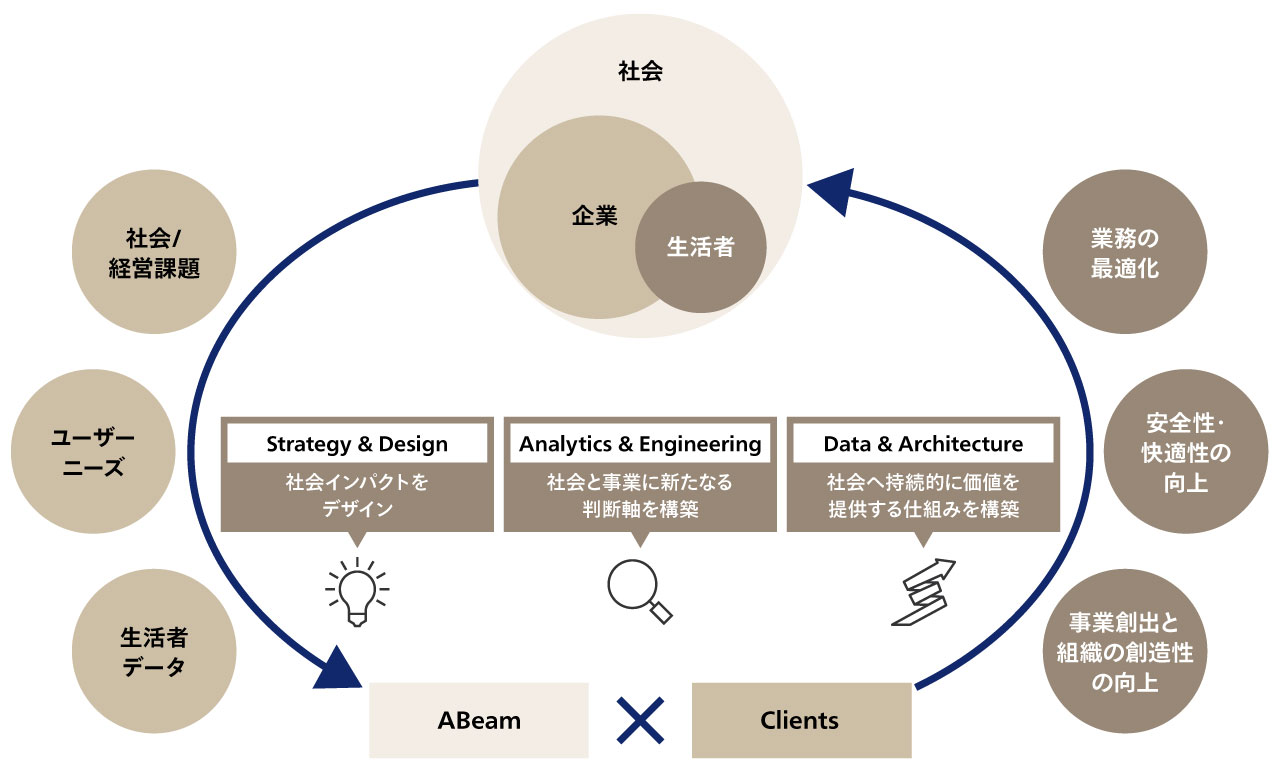 アビームコンサルティングはテクノロジーとイノベーションを組み合わせ、クライアントと共に新しい価値創造を推進し、データドリブン経営により未来への道を切り拓きます。