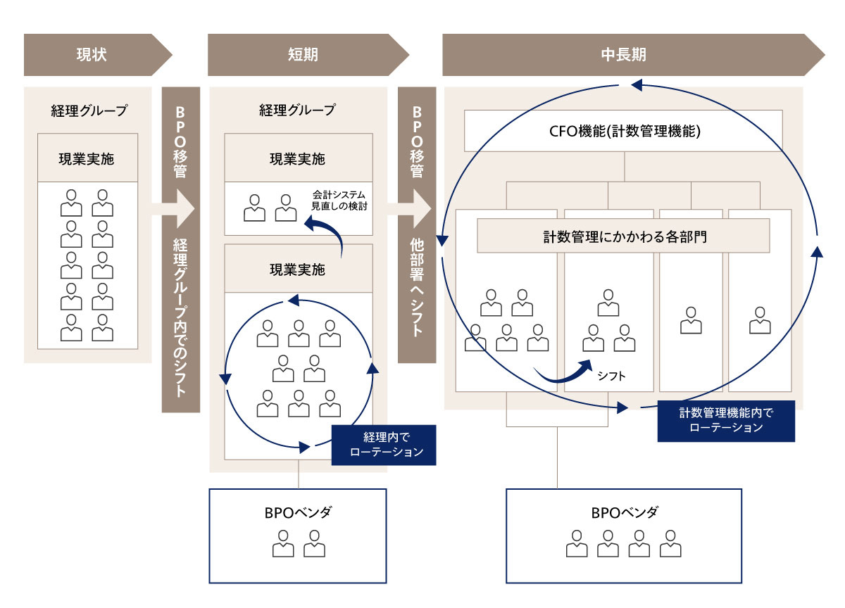 BPOの適用範囲は、企業が目指す将来像や経理機能に求められる役割・能力によって大きく異なるため、まずは経理グループが果たすべき役割と備えるべきケイパビリティを明確に定義することが、戦略的なBPO活用の第一歩となる。