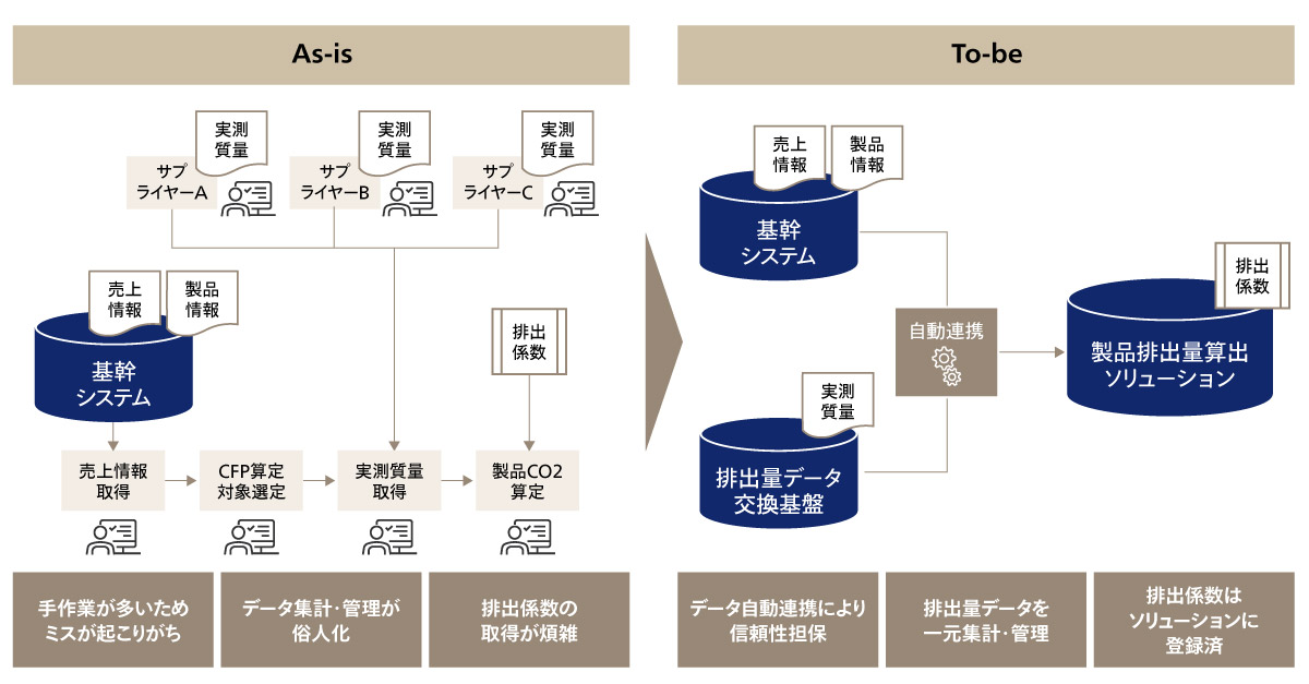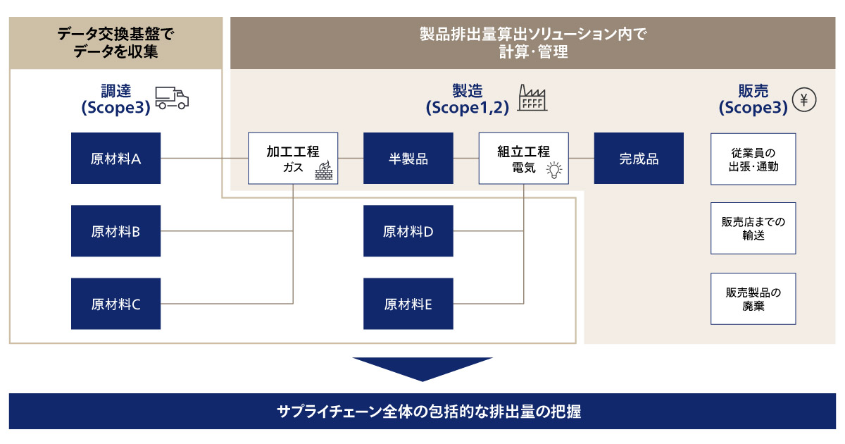 製品別CFP(カーボンフットプリント)の算定と、サプライチェーン全体を繋ぐサステナビリティデータプラットフォームの構築を支援