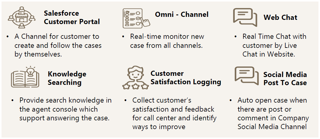 ABeam Consulting can offer the integrated CRM solutions with many digitalize applications. Since Salesforce.com is a powerful CRM with ability to integration, more solutions can be developed. Therefore, ABeam Consulting's Salesforce.com service covers not only Sales/Service cloud implementation but also CRM business consulting, Project management and integration with other digital applications such as ERP, Call Center tool, Social media, etc.