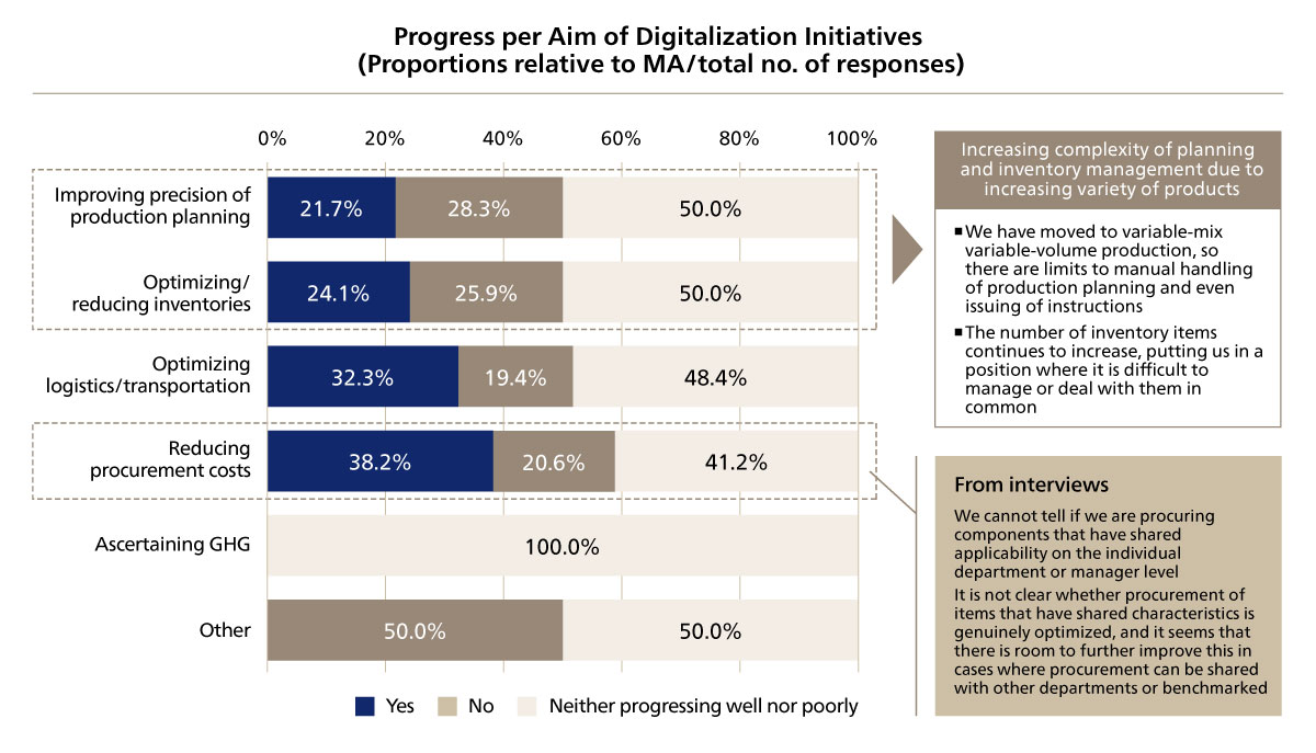 However, in interviews, we heard comments to the effect that, even for reductions in procurement costs, there may be further room for improvement if companies were to look cross-sectionally at things that are procured by individual departments, factories or managers. We also heard opinions to the effect that some efforts were not progressing because it was not possible to check their effects with current data.