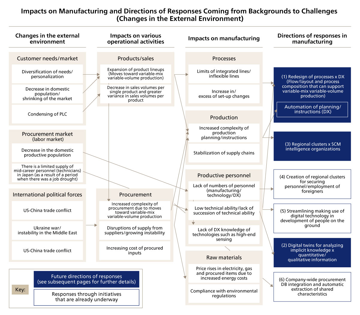 Figure 7. Impacts on Manufacturing and Directions of Responses Coming from Backgrounds to Challenges (Changes in the External Environment)